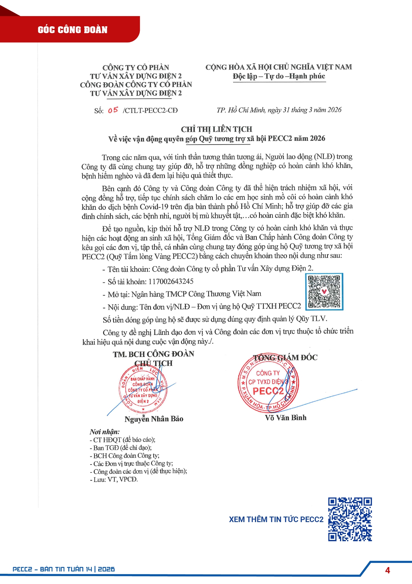 XEM CHI TIẾT TẠI: BẢN TIN PECC2 - TUẦN 14 NĂM 2026